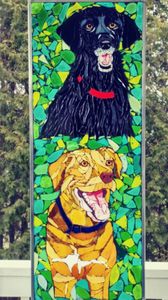 My customers were thrilled to have their beloved dogs immortalized in stained glass with their playful smiles.